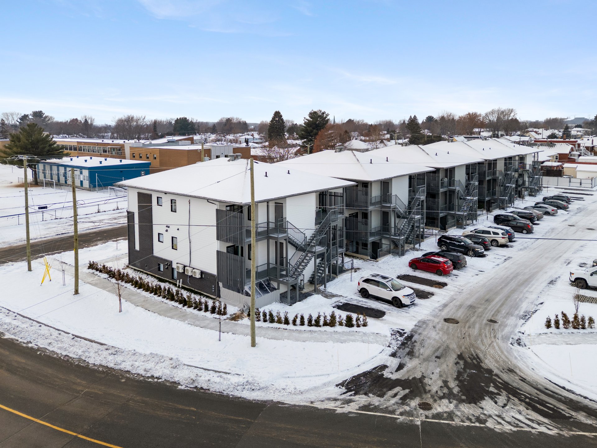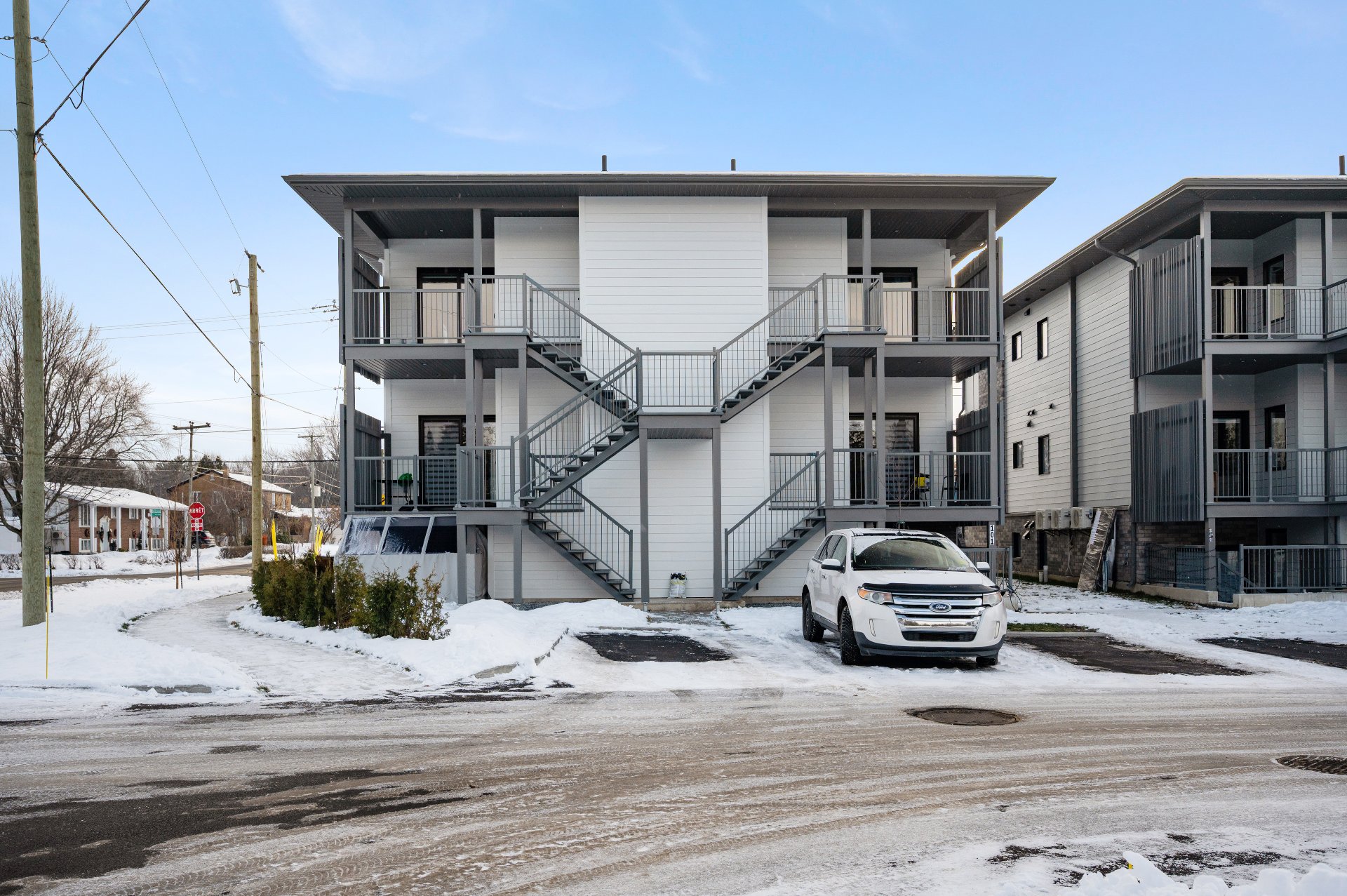 Déneigement des trottoirs et du stationnement aux frais du propriétaire, thermopompe murale & échangeur d'air.