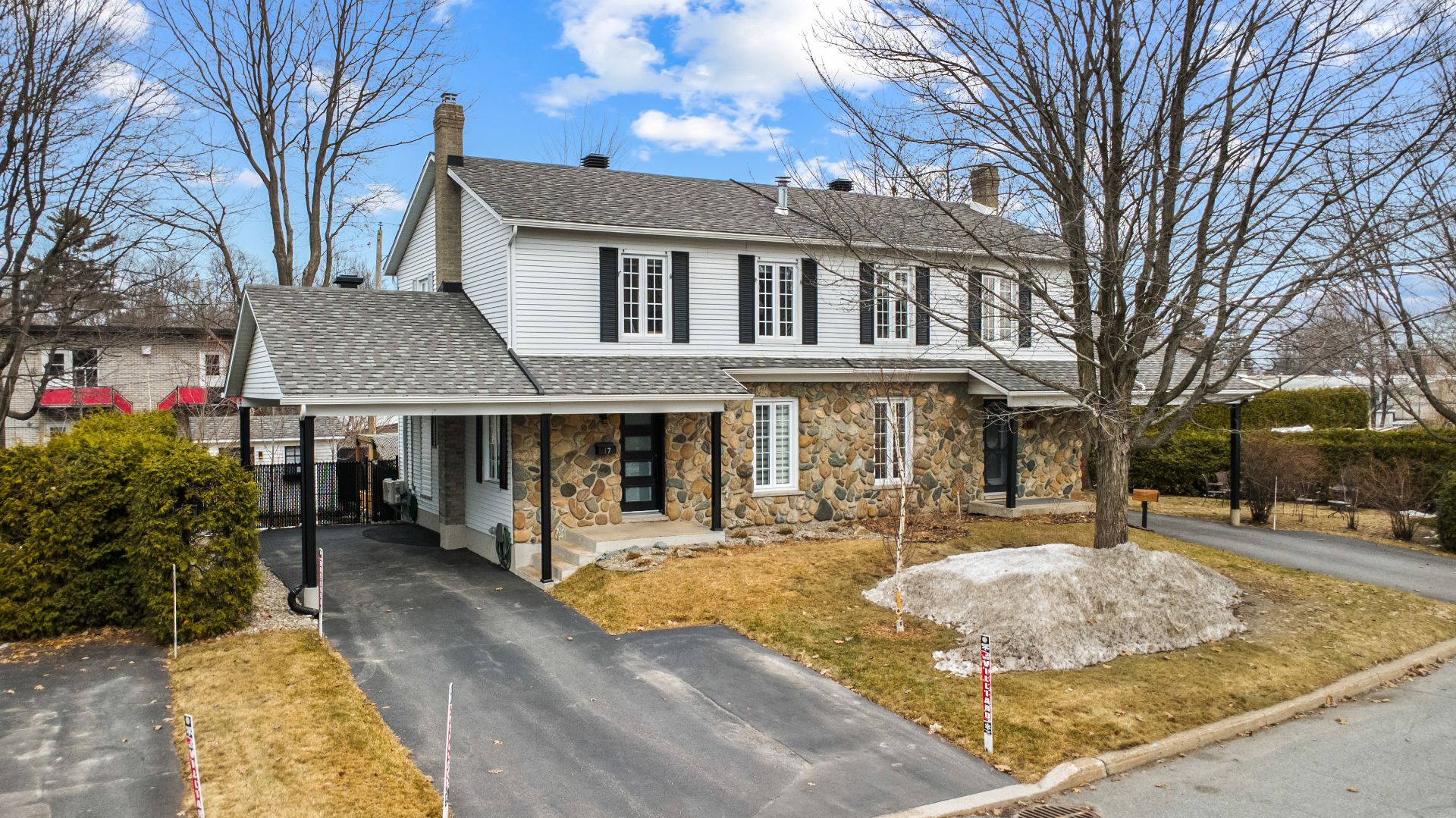 Magnifique et grand jumelé rénové au goût du jour, alliant confort moderne et traditionnel par sa façade en pierre. Dès l'entrée, le foyer au propane nous fait sentir comme chez soi. La cuisine aux tons de bois et la salle à manger sont maximisées par le rangement judicieux. Au total, 4 chambres à coucher peuvent accueillir une grande famille. Une cour bien aménagée avec une piscine hors terre et un mur d'intimité sur un balcon en bois vous fera profiter des moments en plein air en toute quiétude. Une vrai occasion à ne pas manquer pour une visite.
