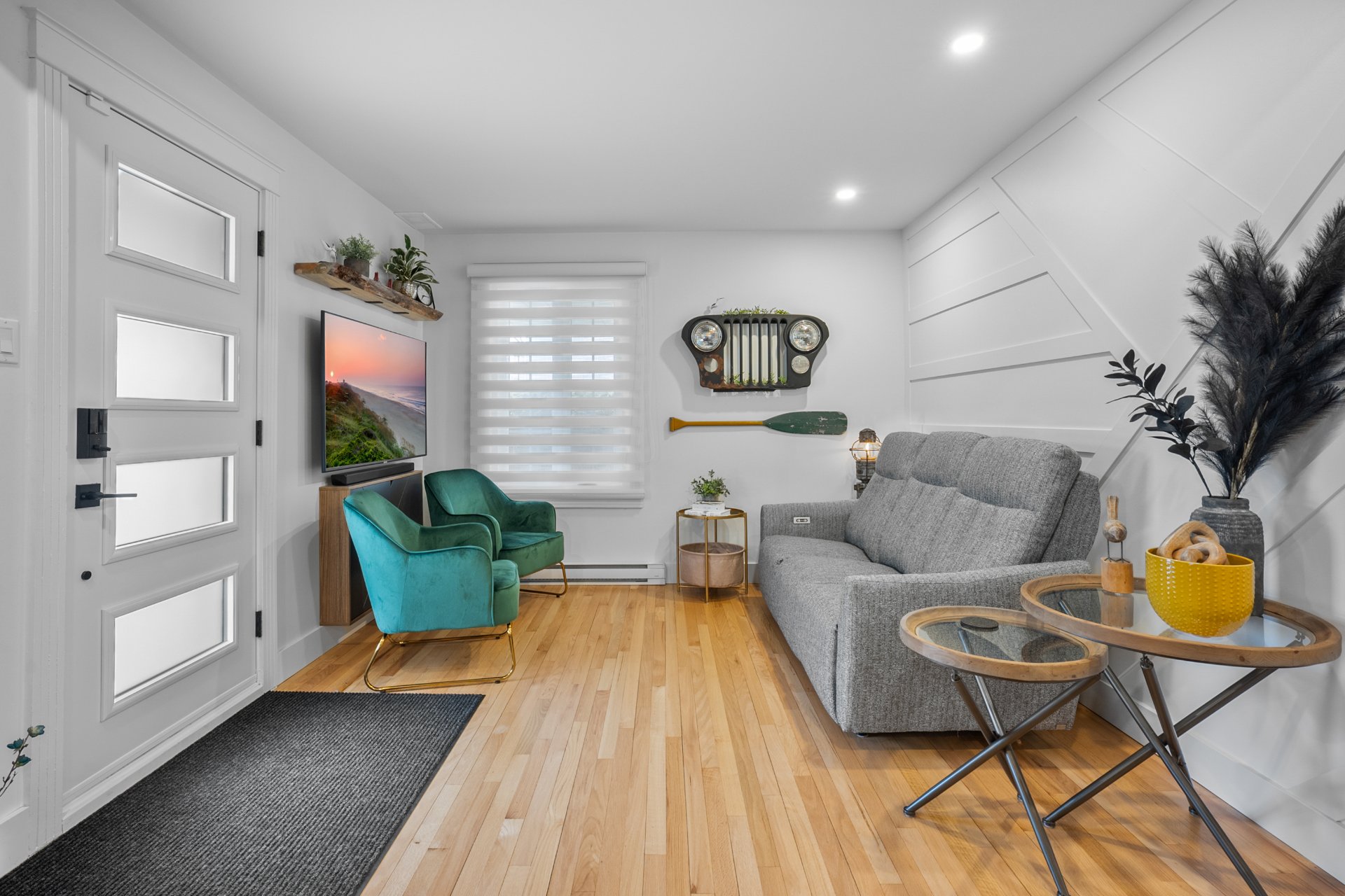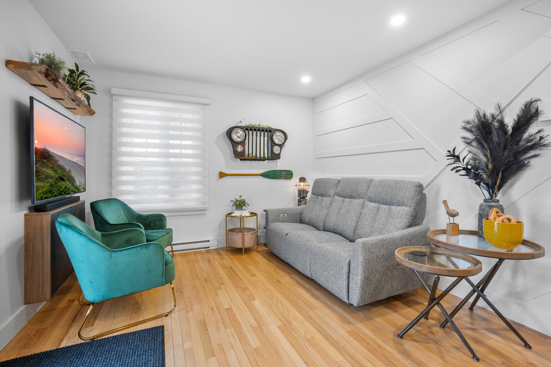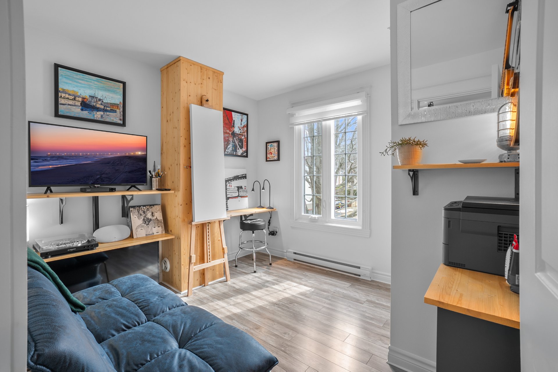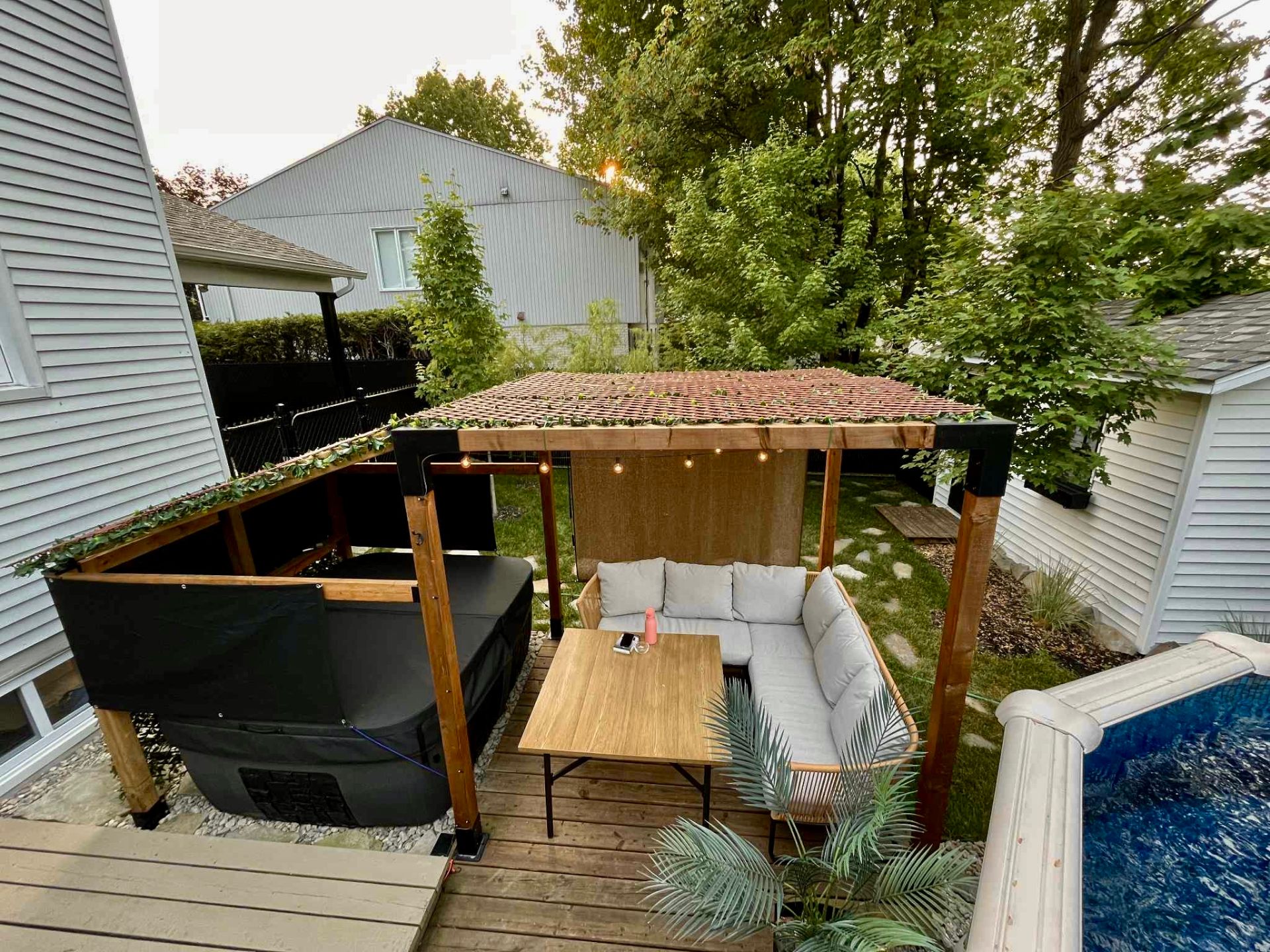 Lustre, stores du rez-de-chaussée fait sur mesure ,petit cellier, tablette 'live-edge' du salon, tablettes du bureau, meuble sous la télé du salon,petite télé de la cuisine et son support téléscopique, piscine hors-terre 12 pieds et son filtreur 2017 environ (pompe, plomberie, écumoir et toile 2025 environ), pergola, remise, foyer au propane, barbecue connecté au propane, thermopompe murale, tablette dans le sous-sol, aspirateur central et accessoires, bacs roulants.