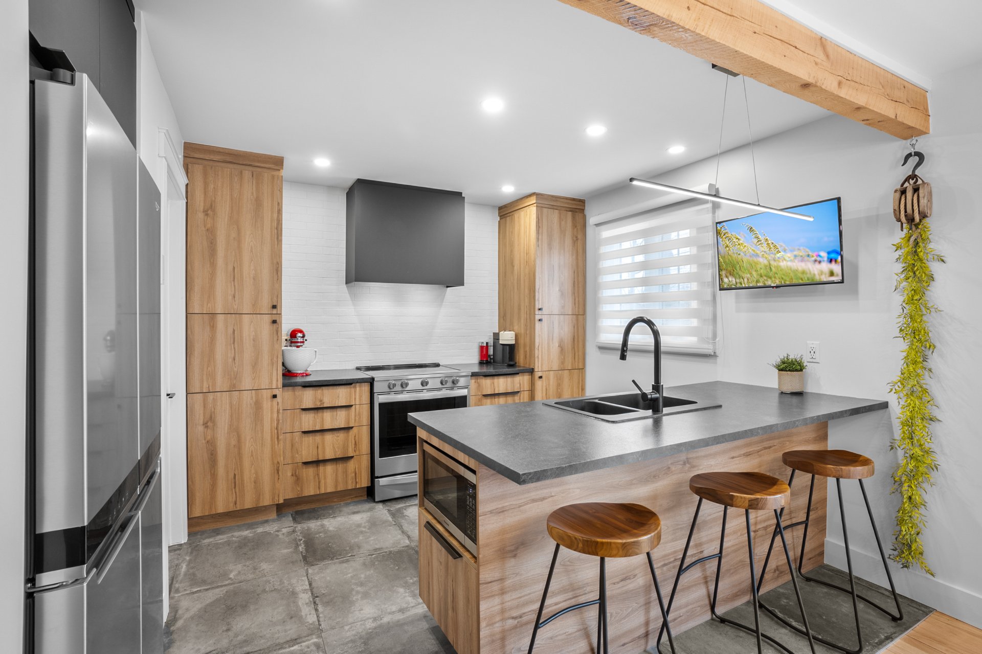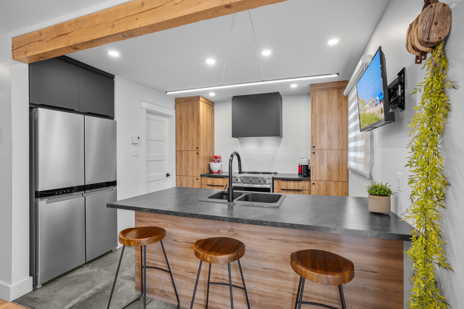 Les autres télés mais les supports muraux resteront là. Spa et accessoires. Cuisinière, frigo et lave-vaisselle.