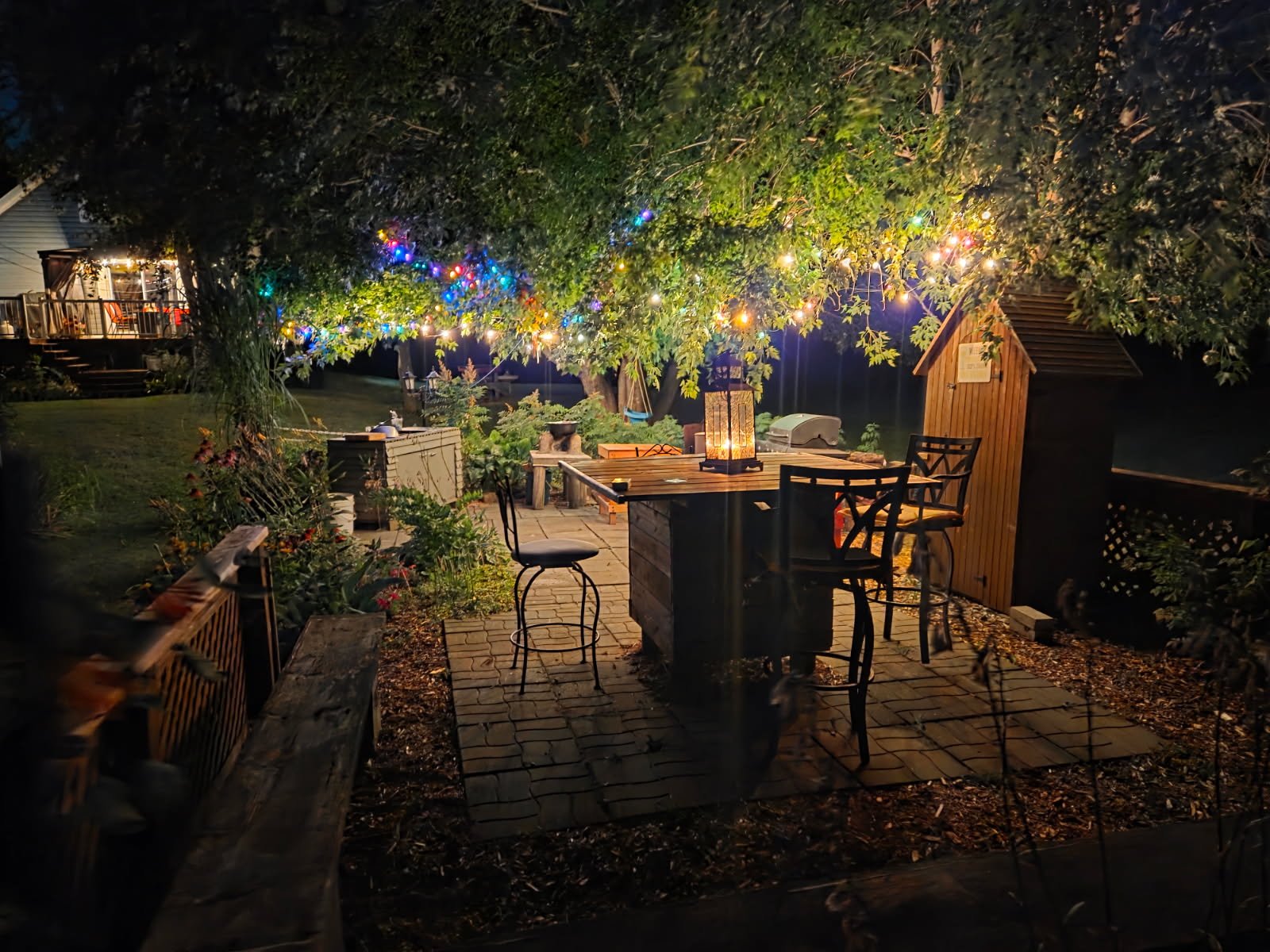 Luminaires, foyer au gaz propane 2010, pompe submersible, frigo et congélateur du sous-sol, thermopompe murale (2têtes chauffage et climatisation)