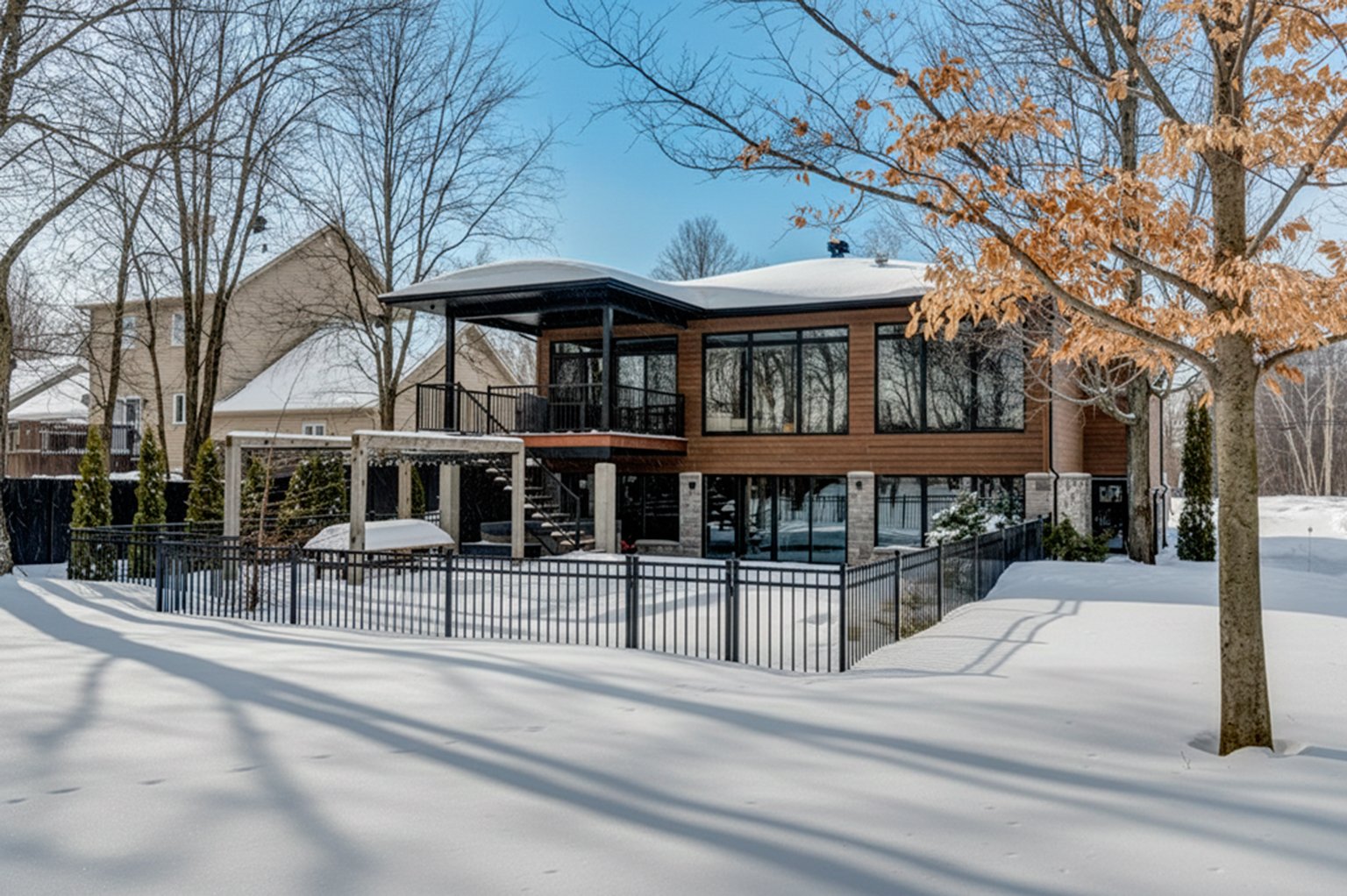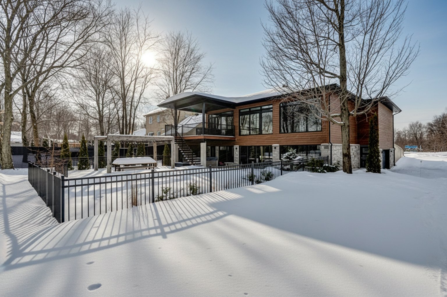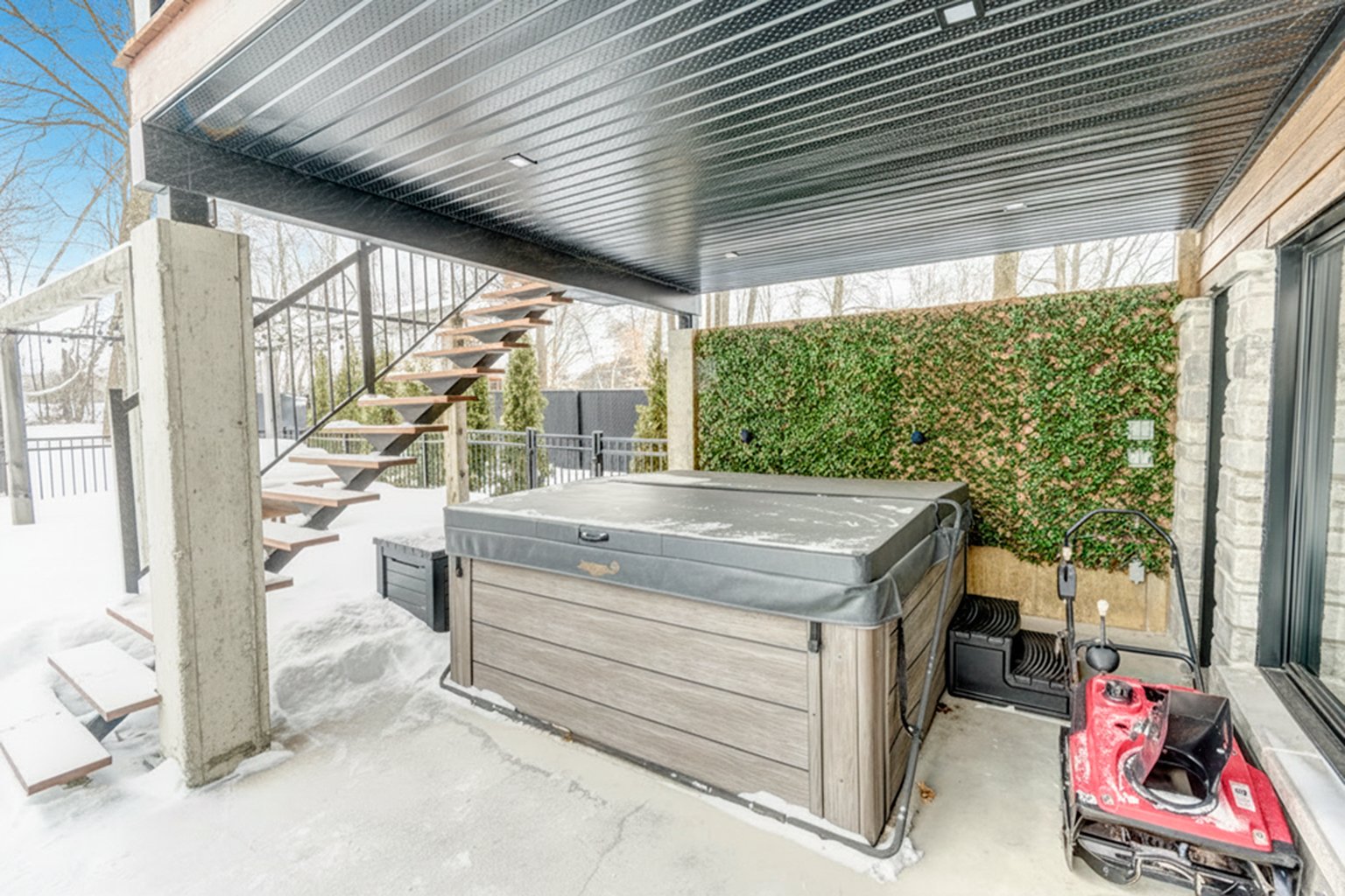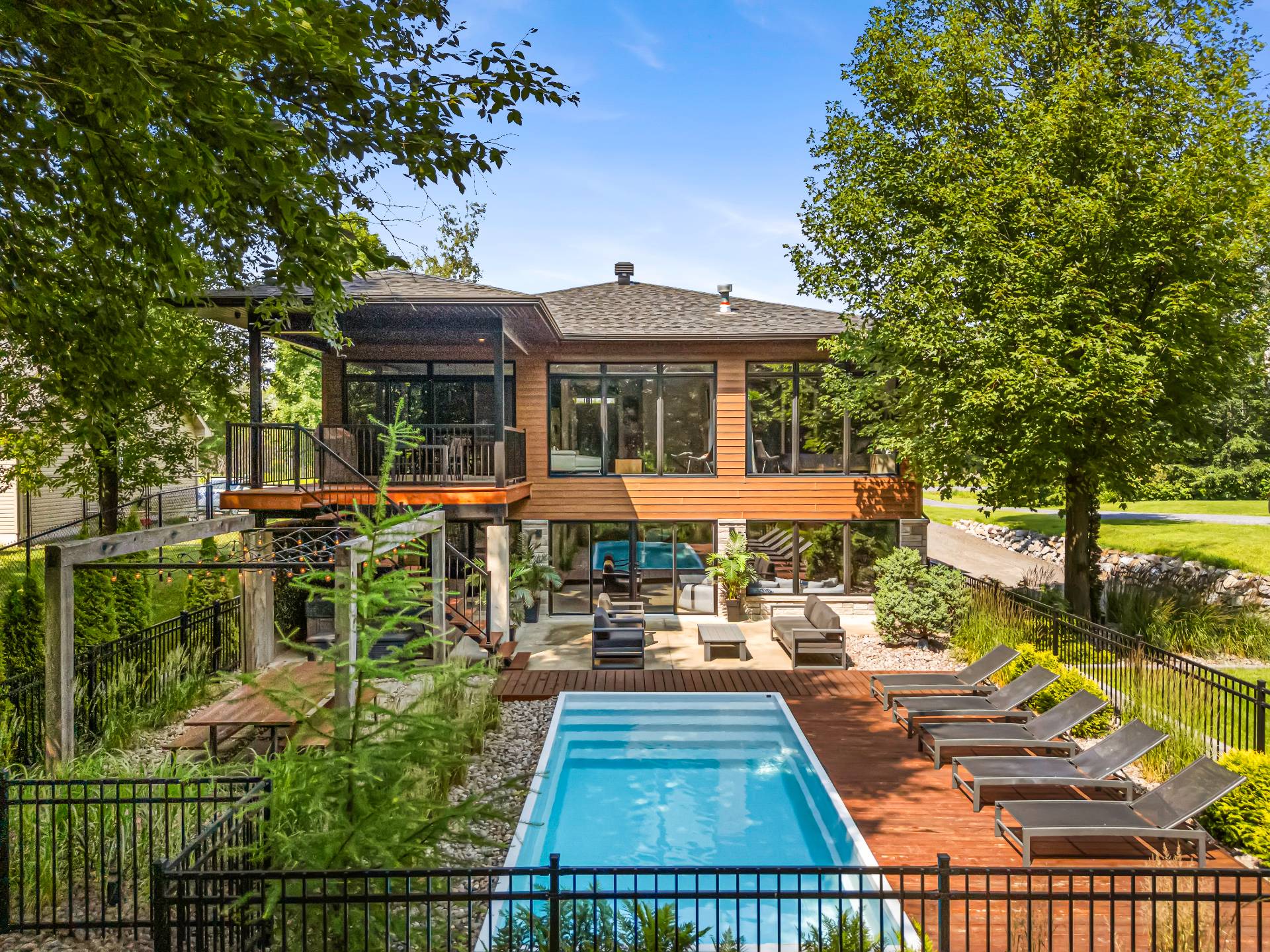 Luminaires, toiles motorisées, stores et rideaux, système de domotique (Contrôle 4) (maison intelligente), piscine creusée en fibre de verre avec accessoires dont chauffe-piscine (au chlore 2018 env.)haut parleurs intégrés dans presque toutes les pièces dont certains invisibles dans les aires de vie (cachés sous le gypse du plafond), 3 ouvre-portes électriques de garage. Système de gicleurs, aspirateur central(boyaux rétractables) 2 thermopompes murales, foyer au propane, cellier 150 bouteilles.