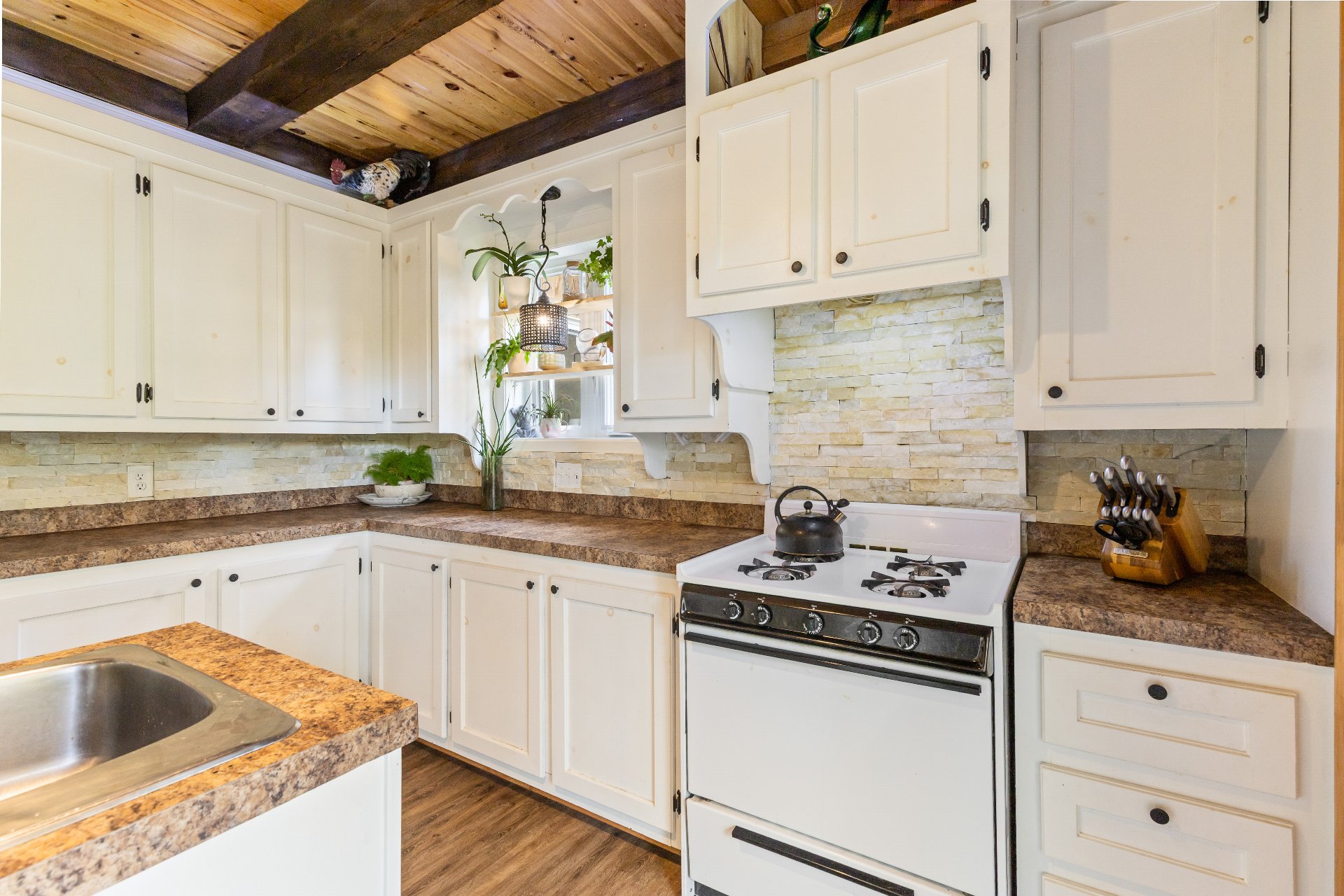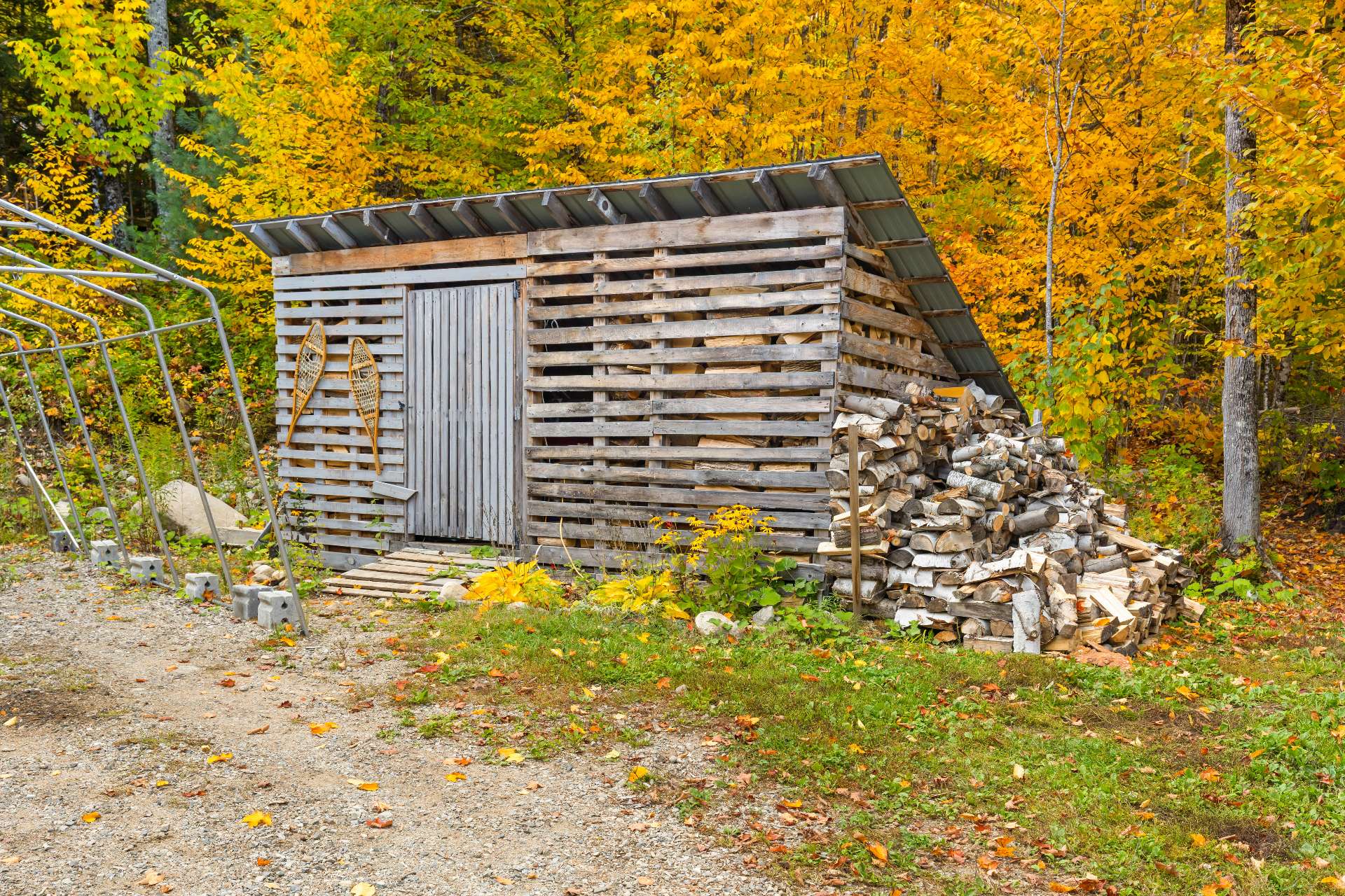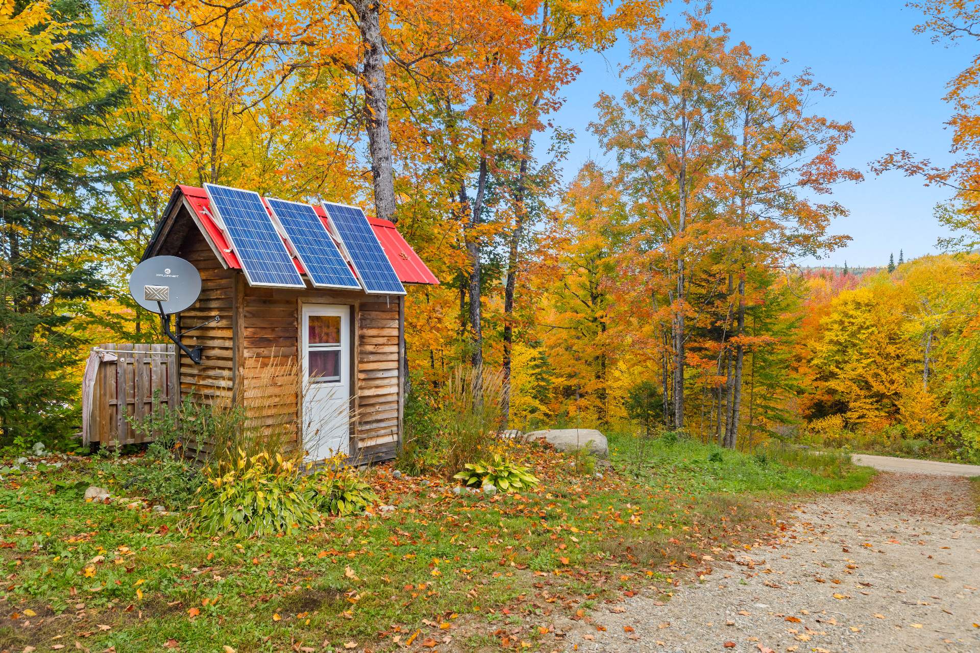 Luminaires, rideaux et stores, abri à bois, toilette extérieure, serre, 3 panneaux solaires, 8 batteries 2023 environ, chauffe-eau au propane 200 000BTU 2024, laveuse (branchée sur le 12 Volts) et sécheuse au propane, poêle à bois (2012 environ)