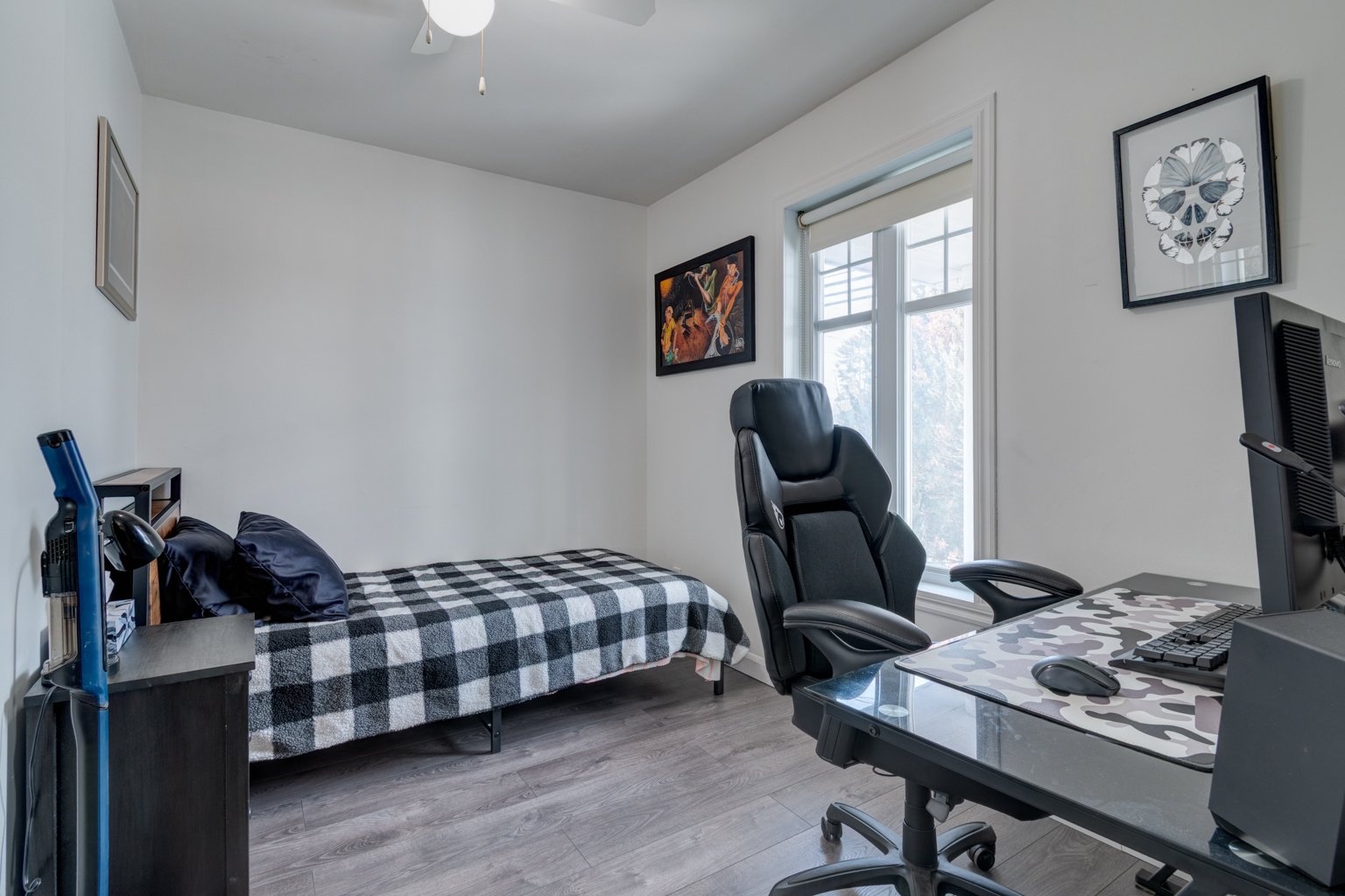 Luminaires, stores, remise, bain tourbillon et douche multi-jets, fournaise électrique et thermopompe, pompe submersible, bacs roulants, module de rangement dans garde robe de la chambre du devant.