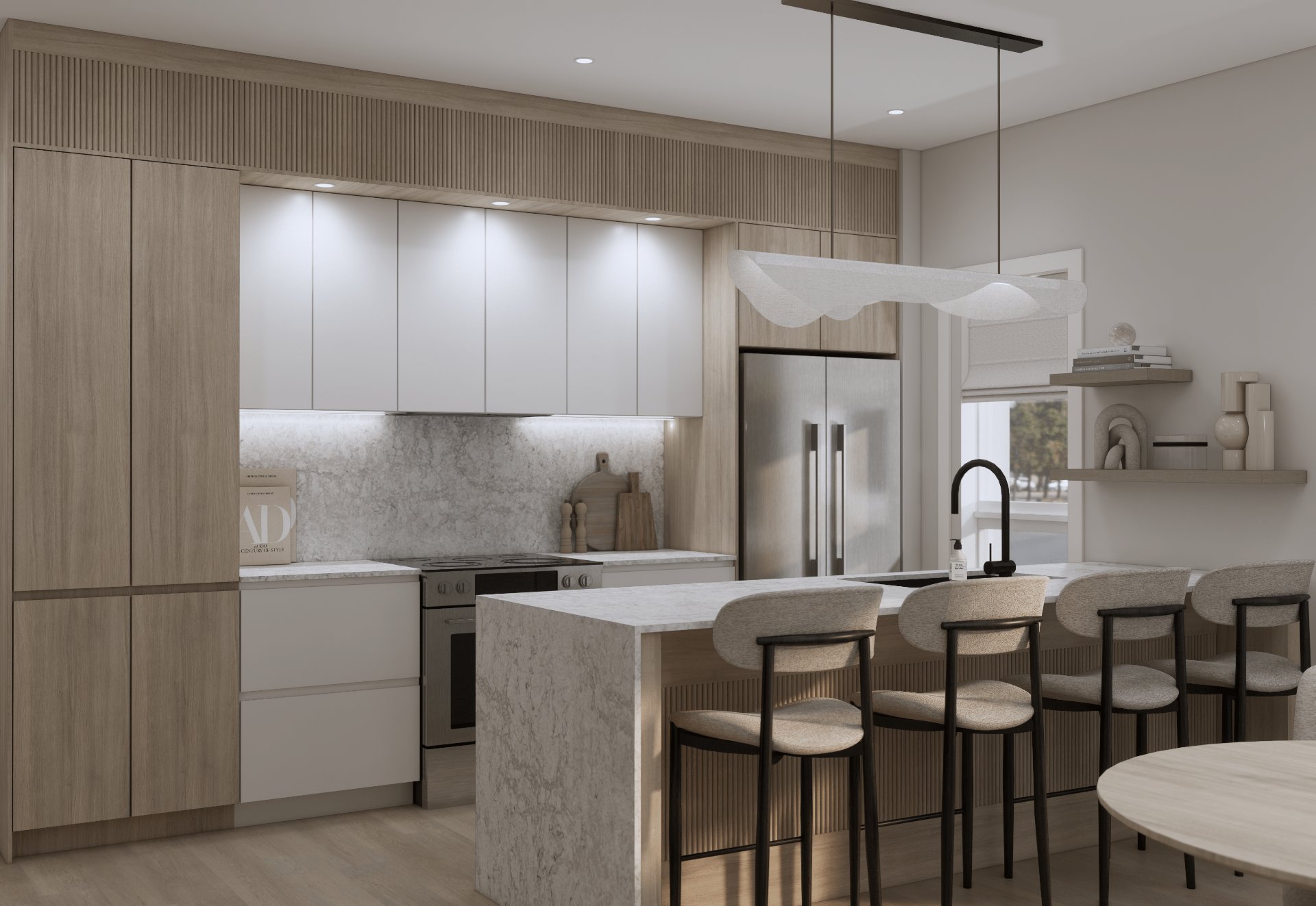 Découvrez un condo contemporain offrant un design raffiné & des matériaux de qualité. Ce superbe espace comprend 2 chambres spacieuses, un plancher chauffant pour un confort optimal, ainsi qu'une douche à l'italienne. La cuisine se distingue par les textutes utilisées, un coin café et un espace cellier, parfait pour les amateurs de gastronomie et de détente. Vous profiterez également d'un rangement personnalisé pensé pour optimiser l'espace. Idéalement situé, ce projet se trouve près de toutes les commodités face à un gym, à distance de marche de l'hôpital, à des écoles primaires & secondaires.
