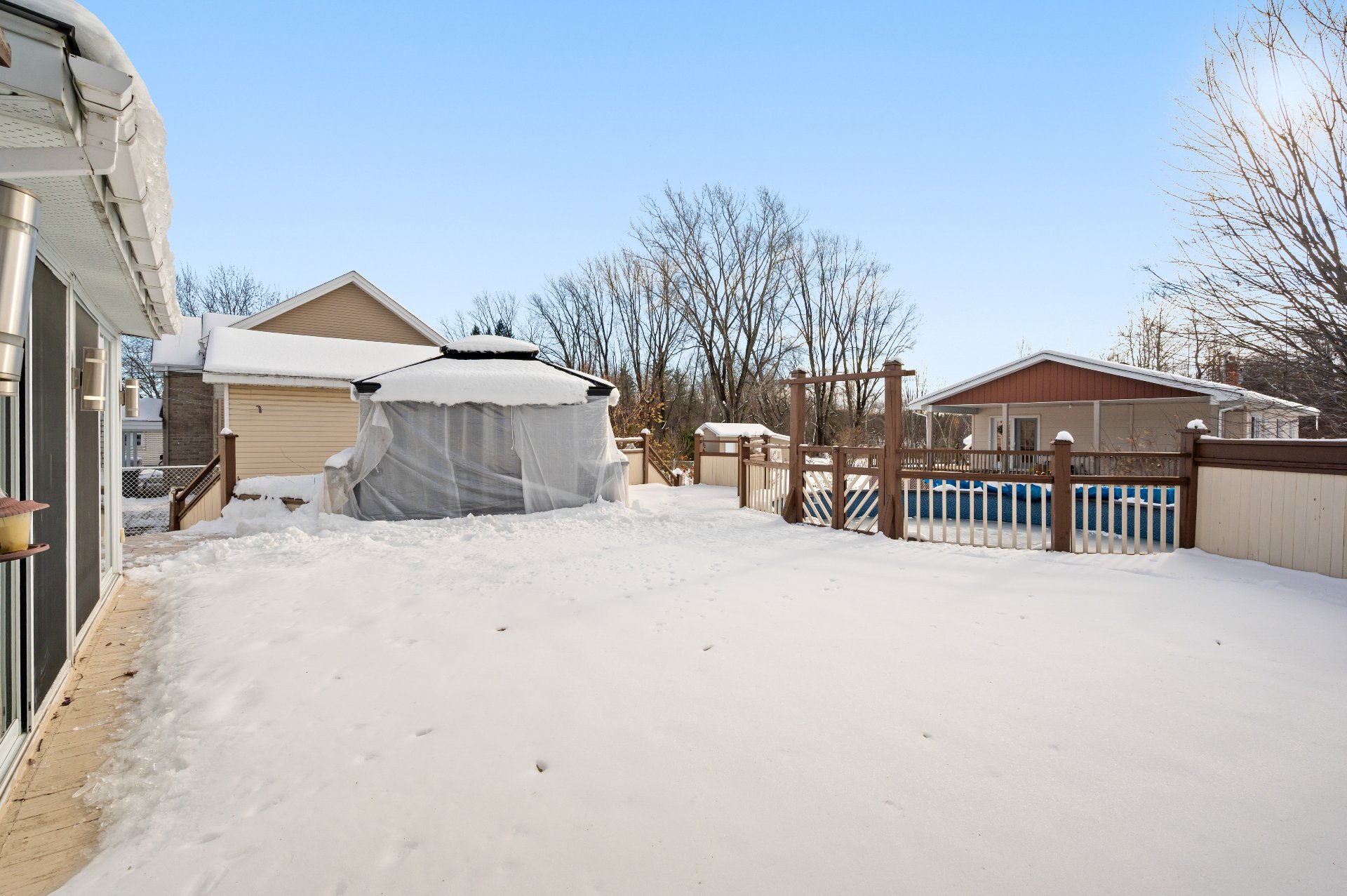 Belle propriété lumineuse située sur un coin de rue, offrant une grande cour clôturée. Vous apprécierez sa piscine hors terre chauffée, son solarium 4 saisons et son immense patio de 48 x 24 pieds, parfait pour profiter de l'extérieur. La propriété comprend également deux garages chauffés (16 x 28 pieds et 24.9 x 25.9 pieds), permettant d'y stationner jusqu'à trois véhicules. Plusieurs rénovations ont été effectuées depuis 2022, dont une salle de bain du sous-sol entièrement remise au goût du jour. Une belle opportunité à découvrir !
