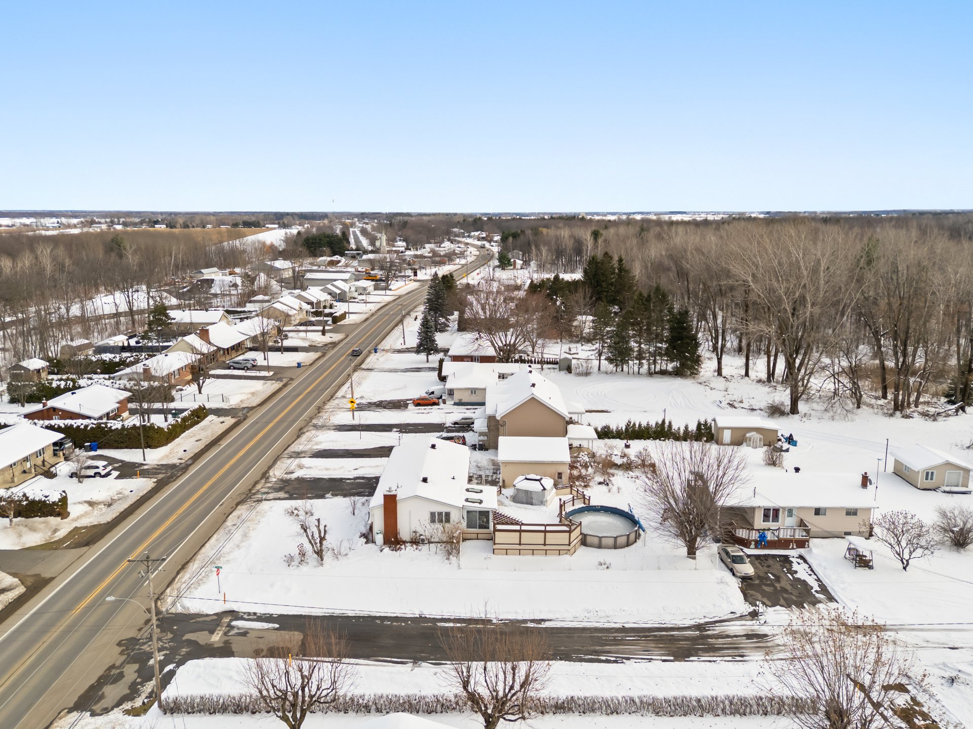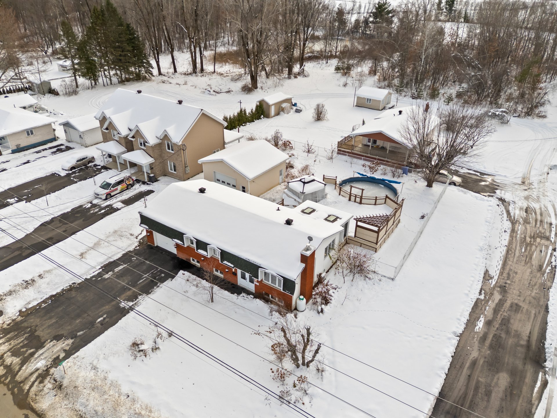 Lustres, pôles et rideaux, unité de climatisation murale, aspirateur central et ses accessoires, bacs à ordures, récupération et compost, piscine hors-terre 24 pieds et ses accessoires (2022) et son chauffe-eau, ouvre-porte électronique du garage mais sans manette, poêle au gaz propane, gazébo, système d'alarme relié avec Telus 30$/mois.