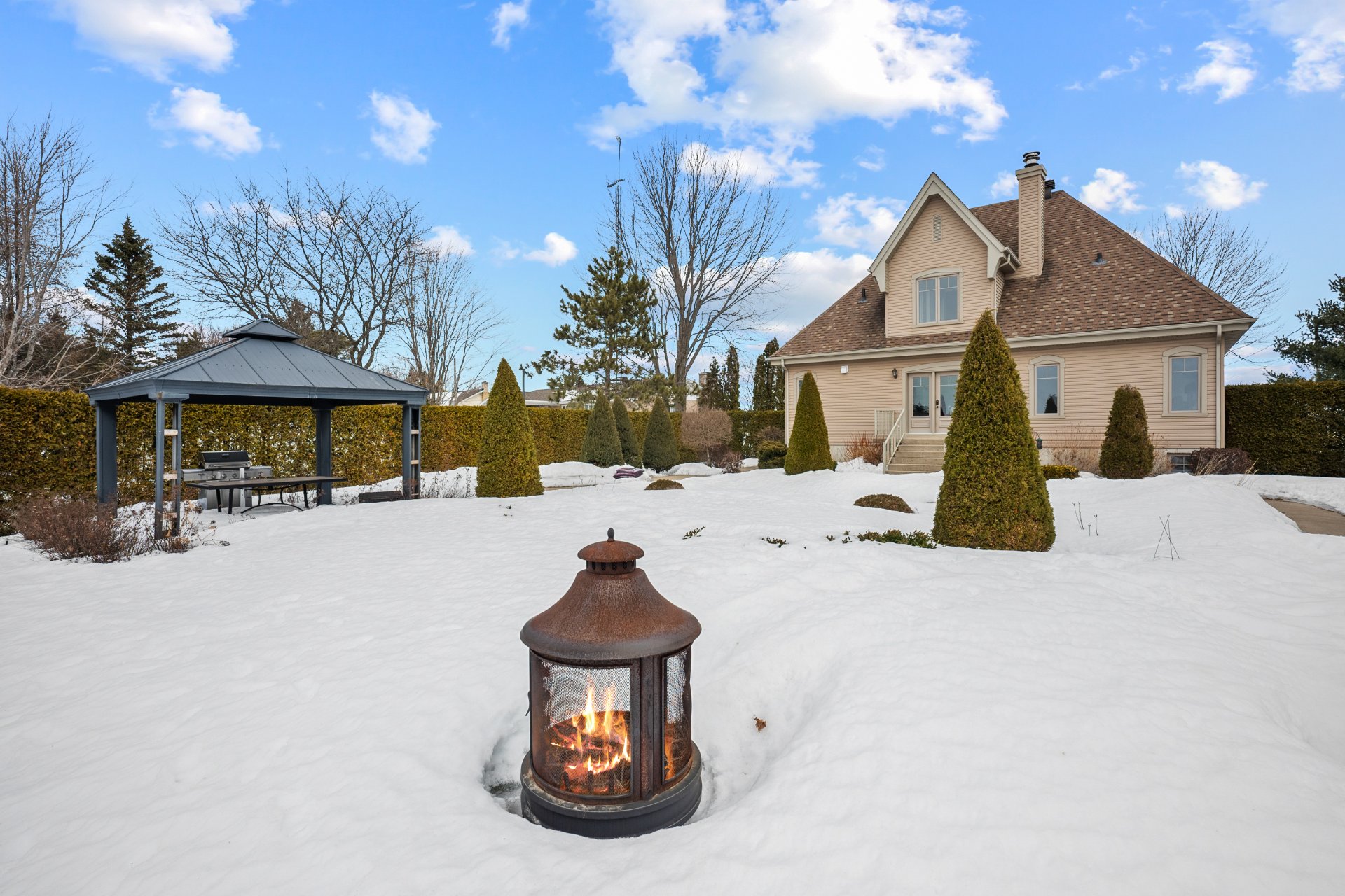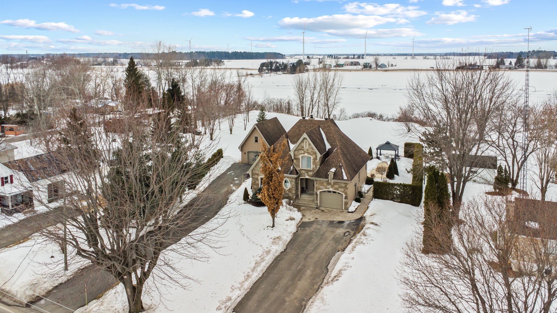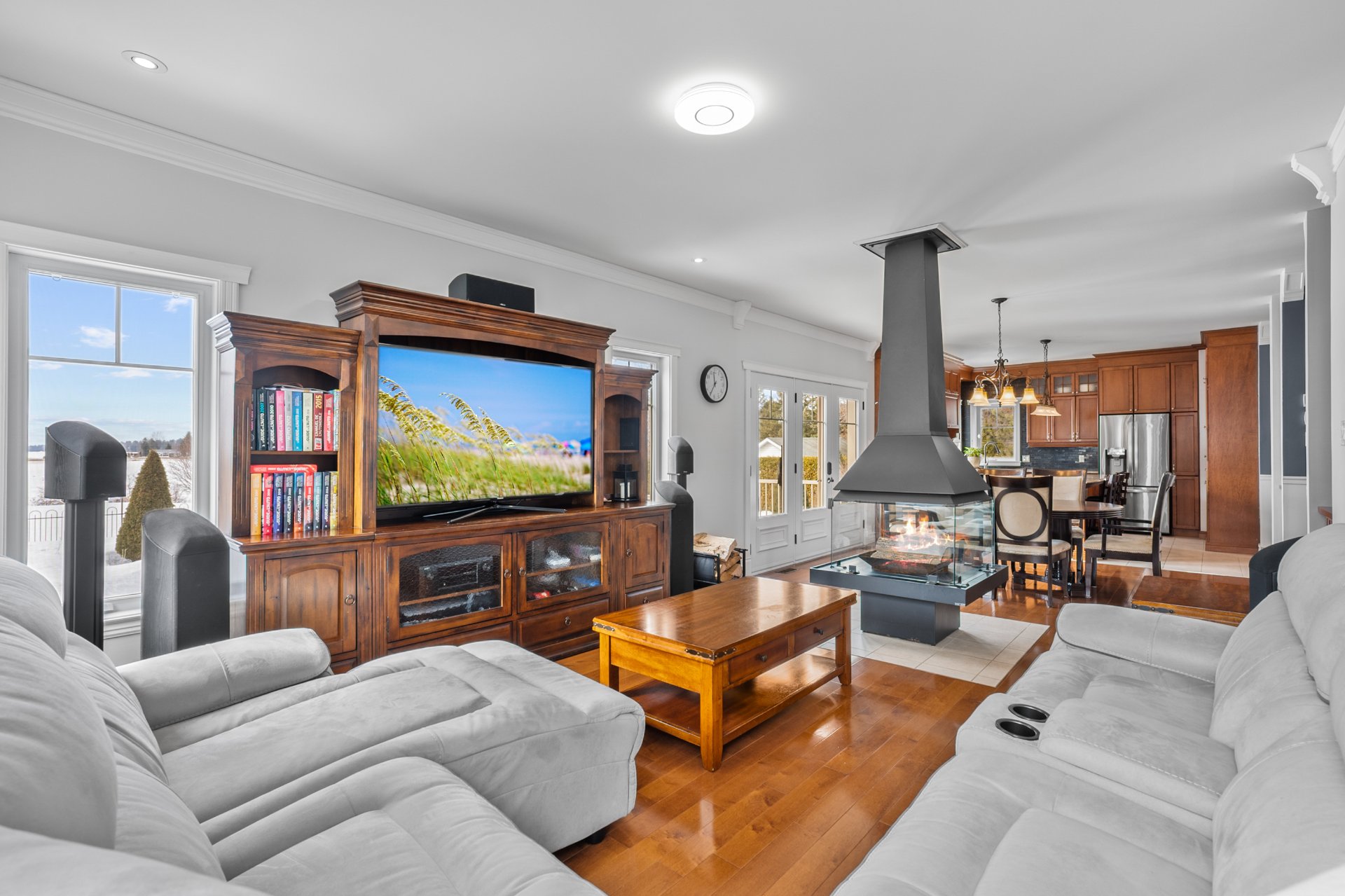 Lustre, rideaux, cellier, système au chlore de la piscine, gazébo, 2 ouvre-portes électriques de garage avec manette chaque, foyer 4 façades dans le salon, fournaise électrique et thermopompe York, système de plancher chauffants du sous-sol, prise à génératrice