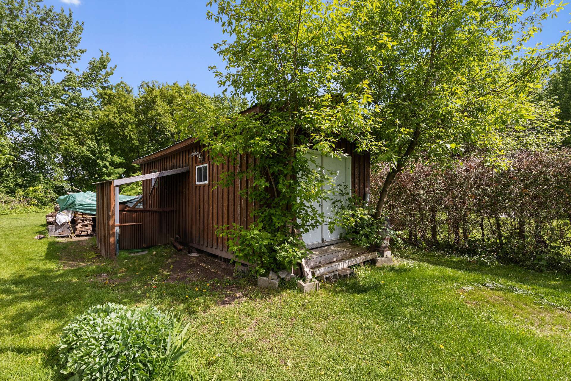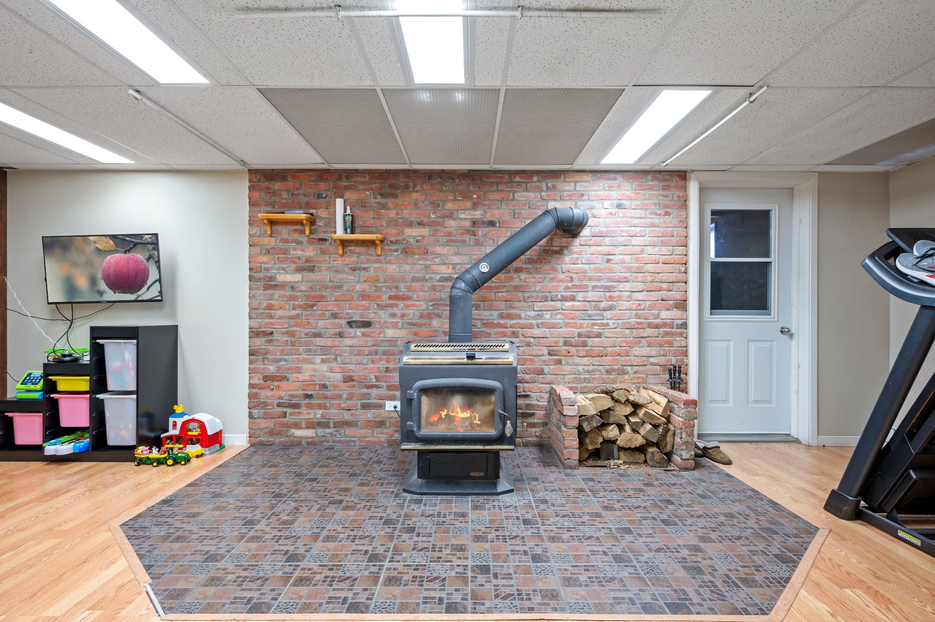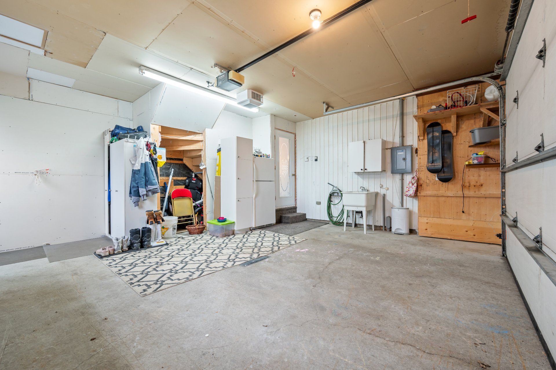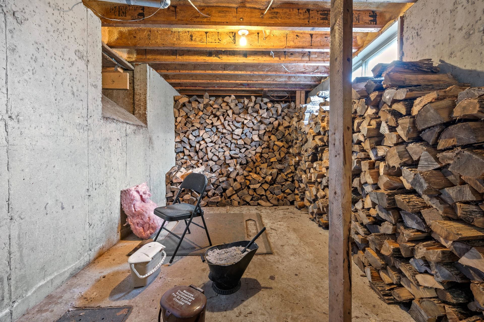 Lustres, luminaires, stores, rideaux et tringles, ouvre-porte électrique de garage avec une manette, aspirateur central et accessoires, remise, poêle à bois et bois de chauffage restant (10 cordes dehors et quelques cordes dans la pièce au sous-sol), lave-vaisselle, lit escamotable de la chambre du sous-sol, bacs à ordures récupération et compost