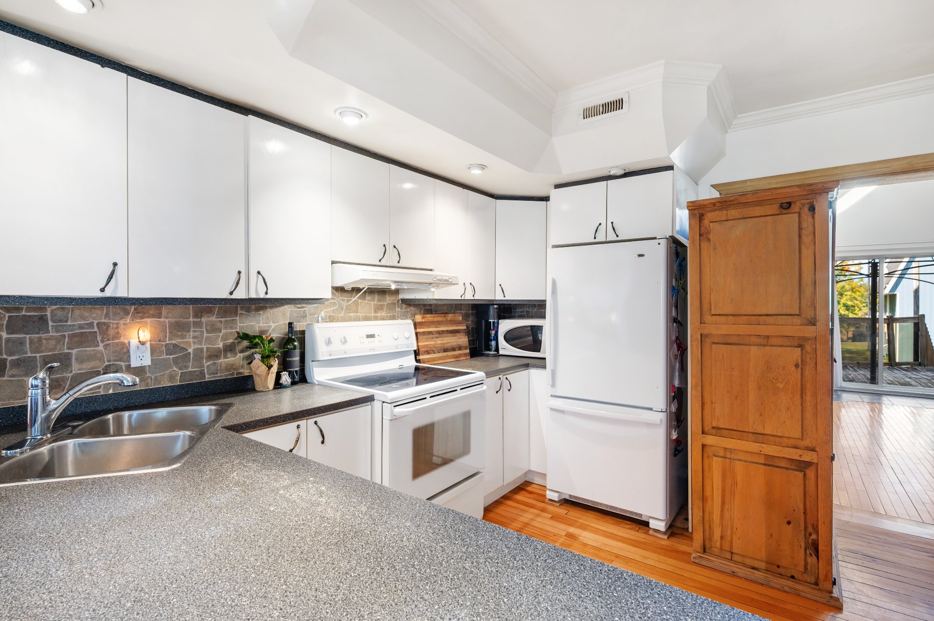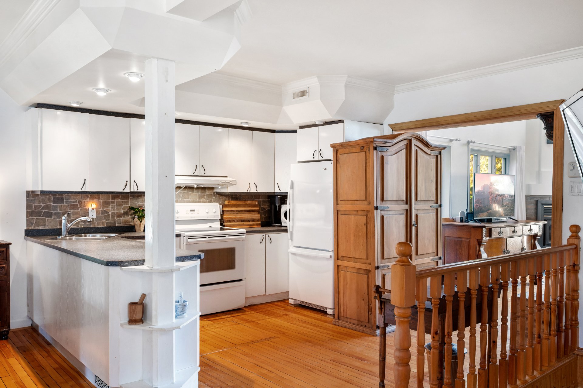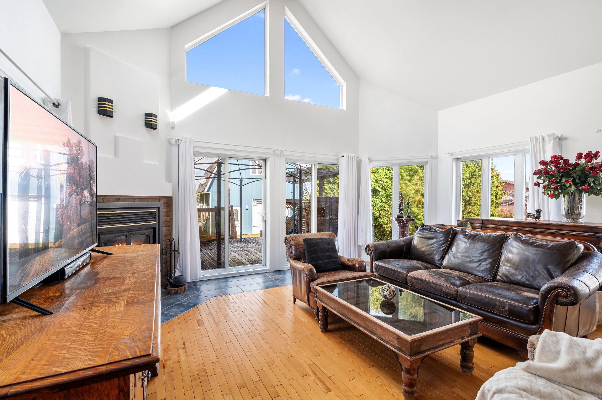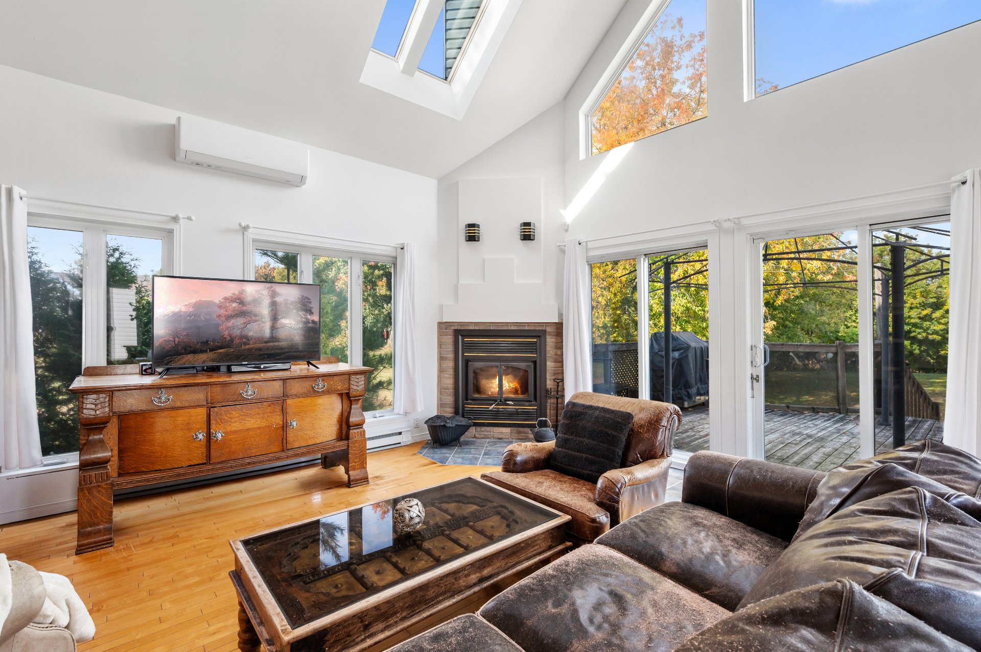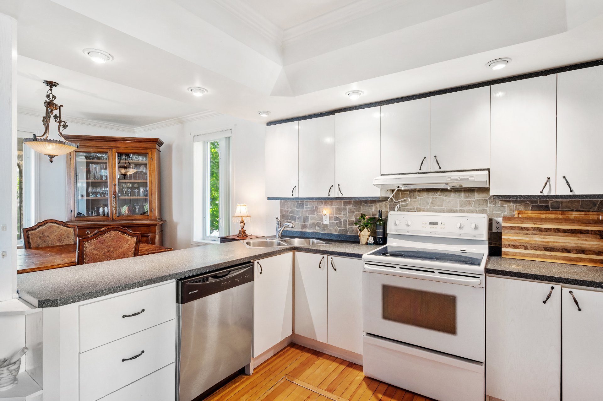 Lustres, luminaires, stores, pôles, rideaux, lave-vaisselle, réfrigérateur, cuisinière, ensemble laveuse/sécheuse, bacs à ordures, récupération et compost, système d'alarme relié et 2 caméras, échangeur d'air et accessoires, aspirateur central et accessoires, thermopompe murale 3 têtes, thermopompe du garage, ouvre-porte électrique du garage.