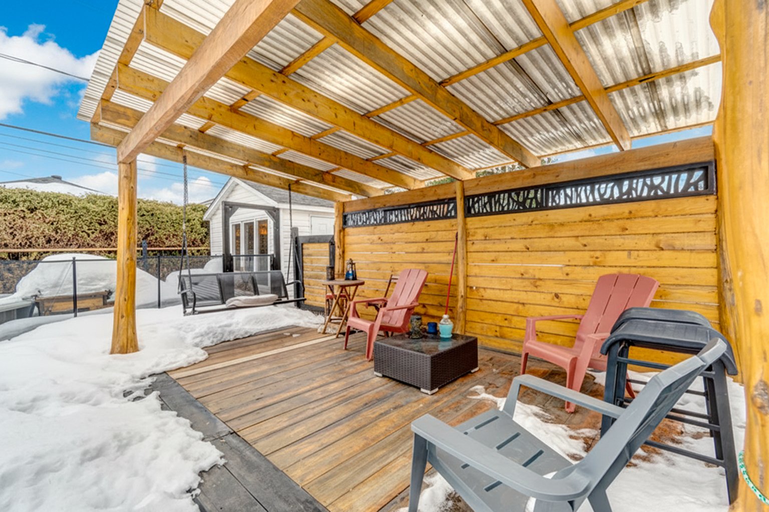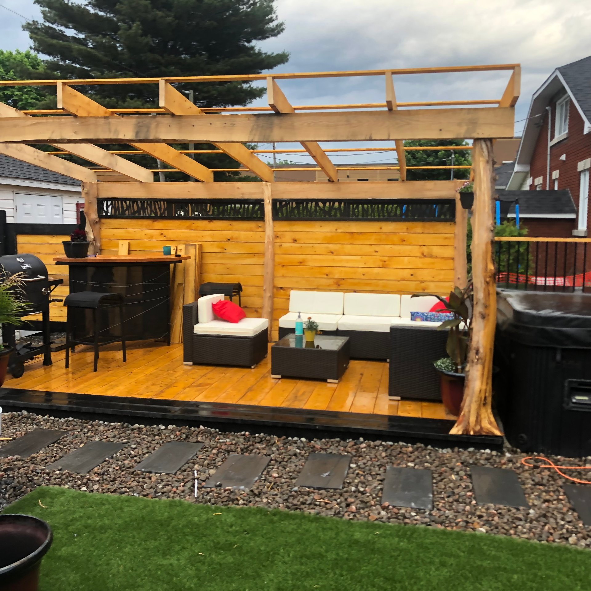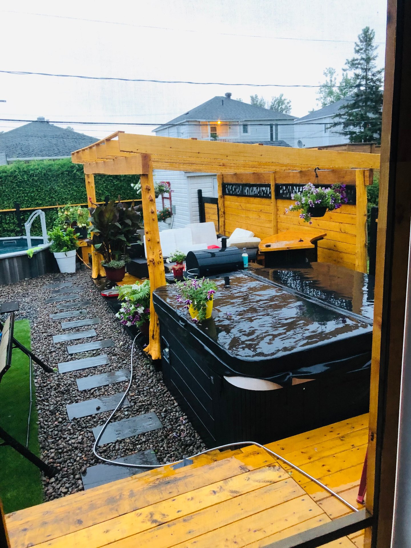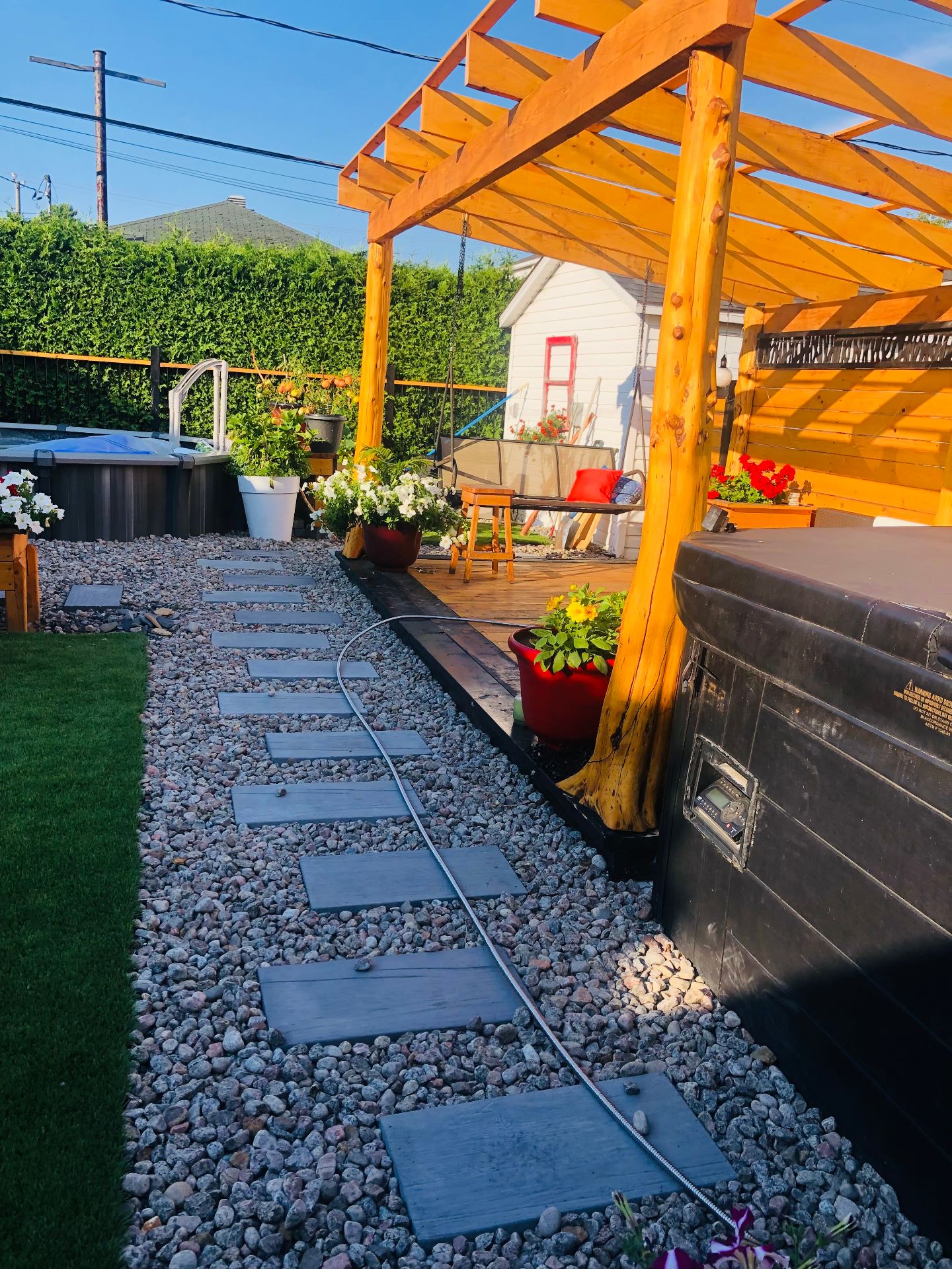 Lustres, luminaires, cuisinière, réfrigérateur, lave-vaisselle, laveuse & sécheuse. Spa (tuyauterie à réparer), piscine semi creusée 2021 10 x 15 pieds au chlore et son chauffe piscine (qui est à réparer) gazépo (permanent), remise avec courant rendu.